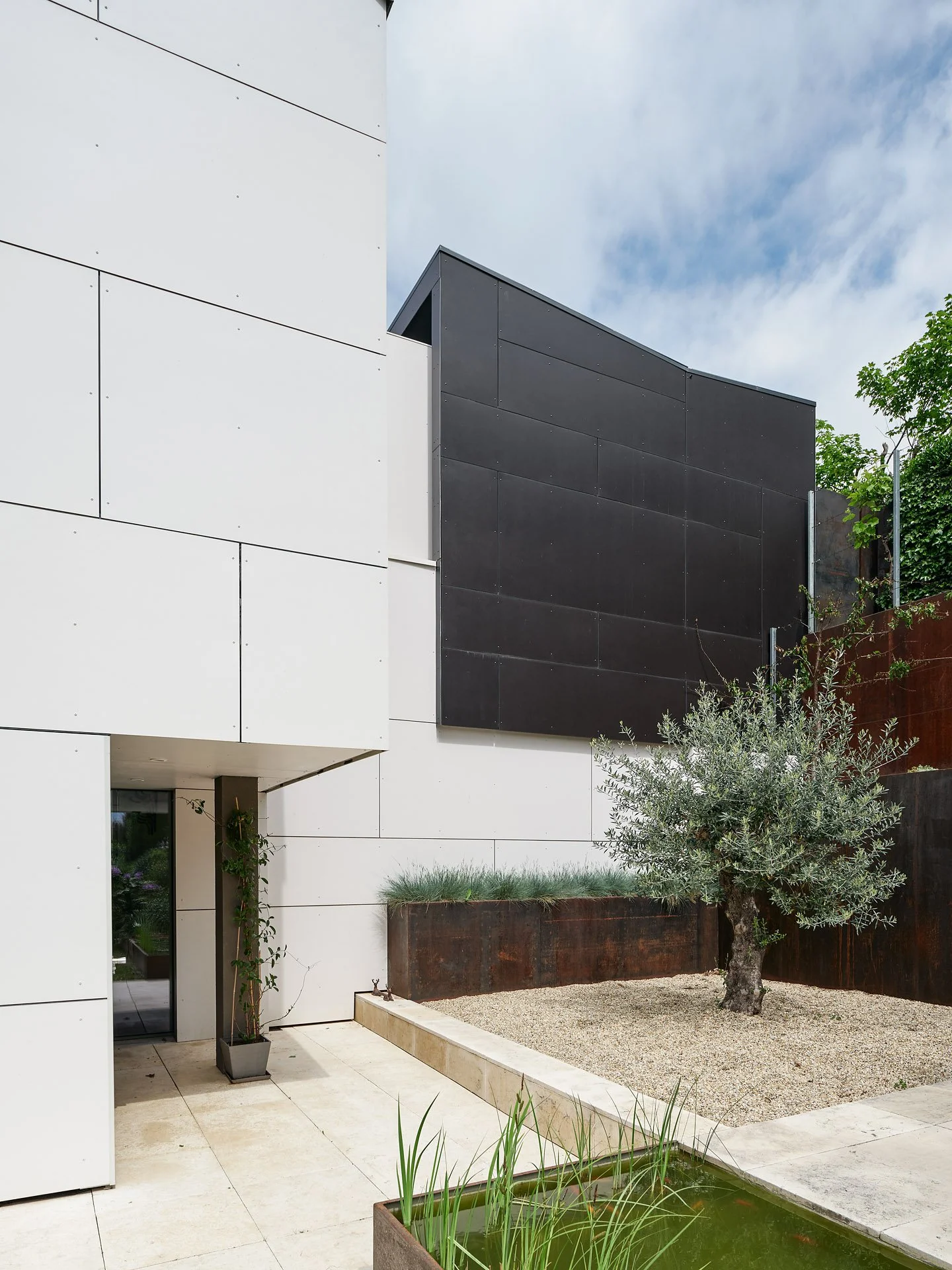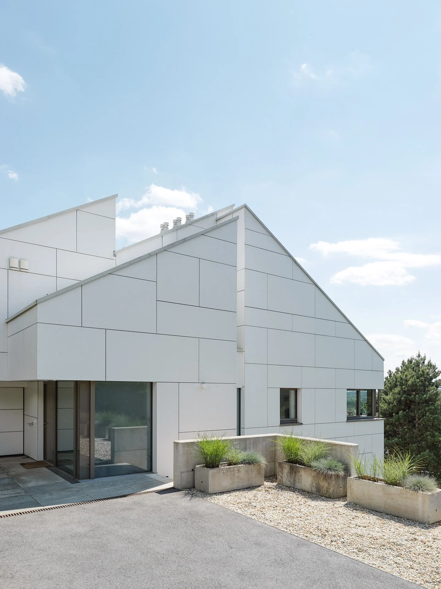 Dank des hohen Gestaltungs-anspruchs des Bauherrn konnte das architektonische Konzept sehr entschlossen umgesetzt werden. Öffnungen und Rücksprünge sind bis ins Detail präzise umgesetzt.